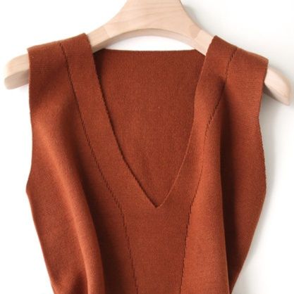 深めのV字ネックラインが印象的なニットビスチェです。