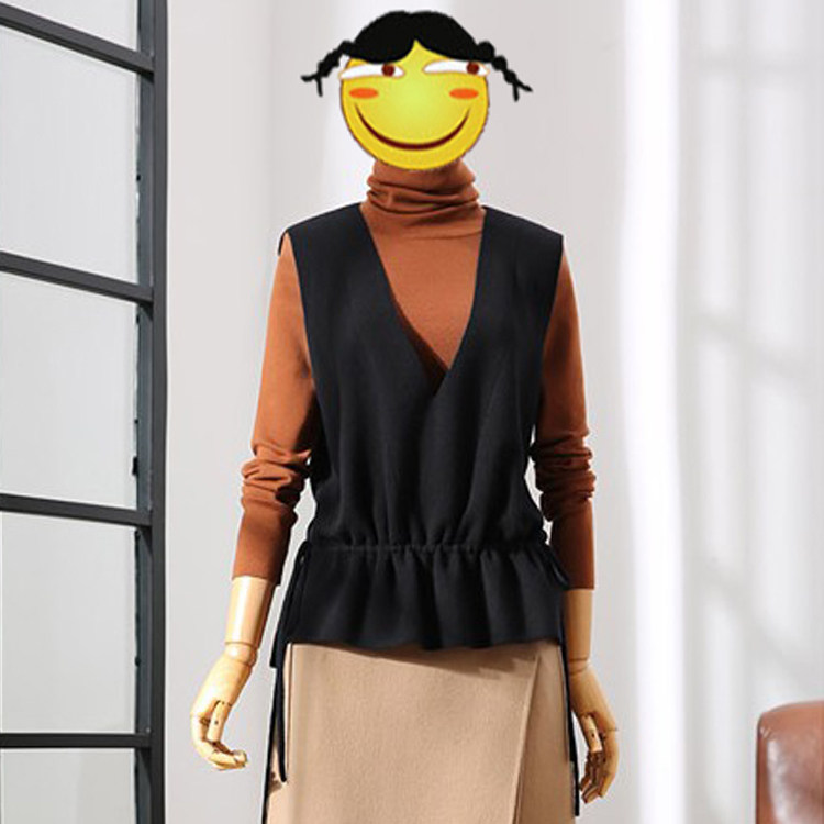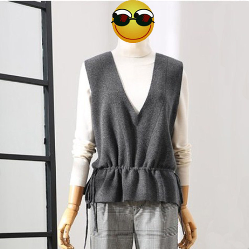 深めのV字ネックラインが印象的なニットビスチェです。 裾部分に絞り紐が施され、シルエットに変化をつけられるデザインが魅力です。 タートルネックやロングスリーブと重ね着することで、こなれ感のあるレイヤードスタイルが完成します。 程よい厚みのニット素材で季節の変わり目にも活躍し、オフィスからカジュアルまで幅広く着回せます。