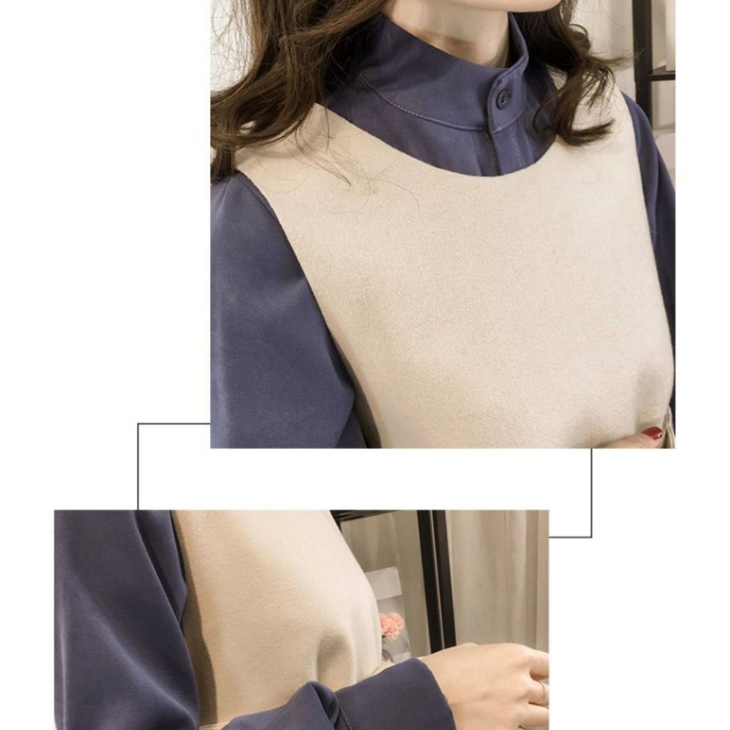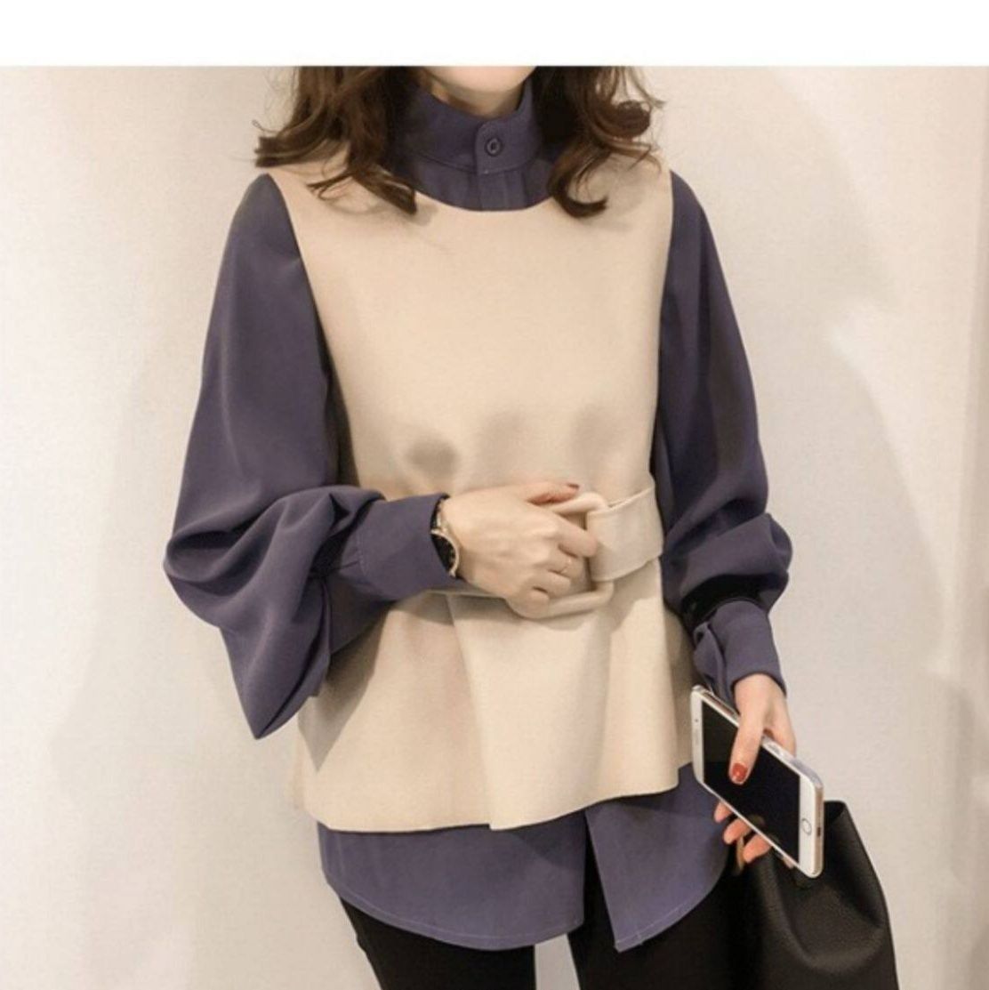 タートルネックやブラウスとの重ね着で洗練された雰囲気を演出できます。