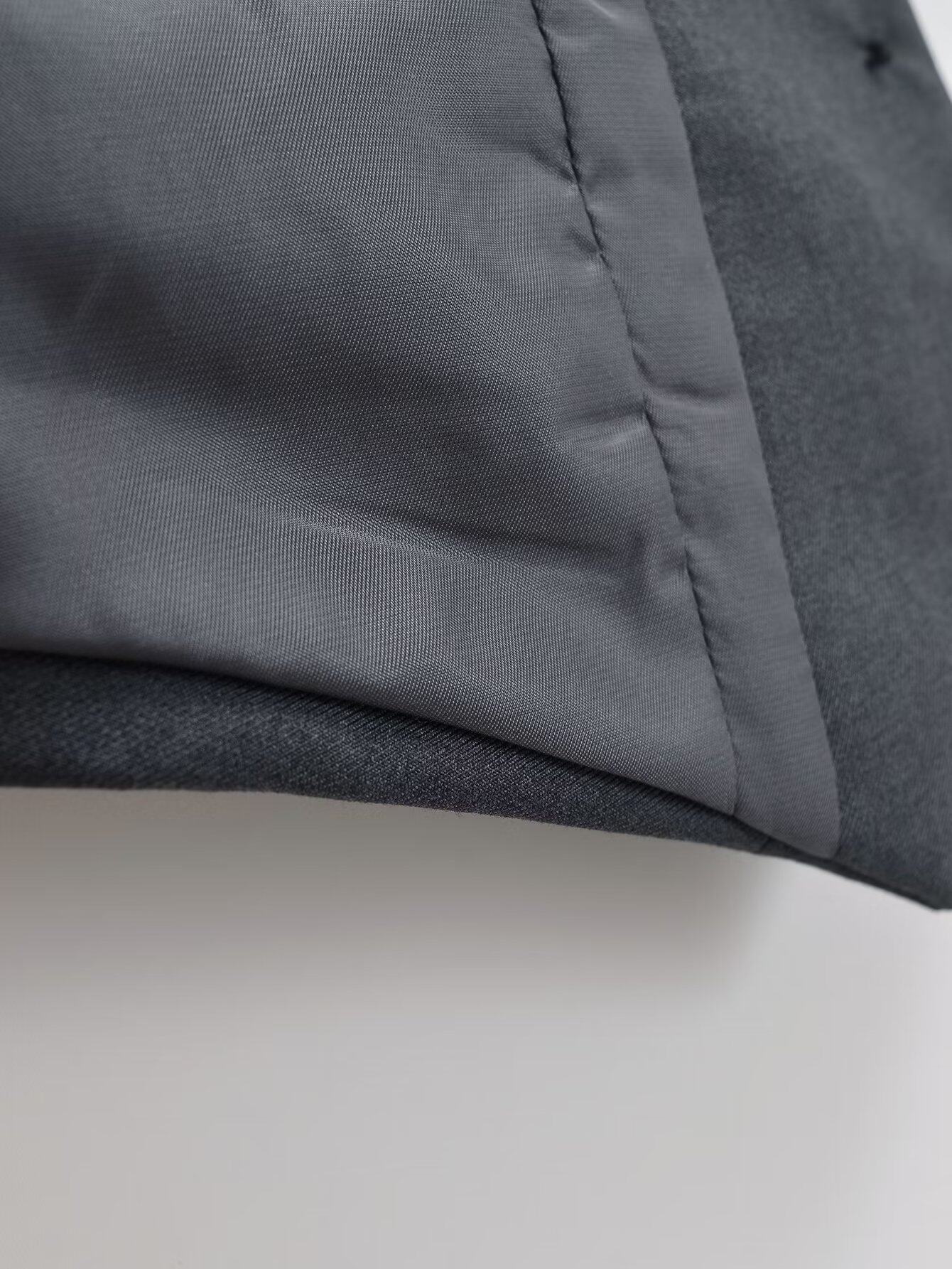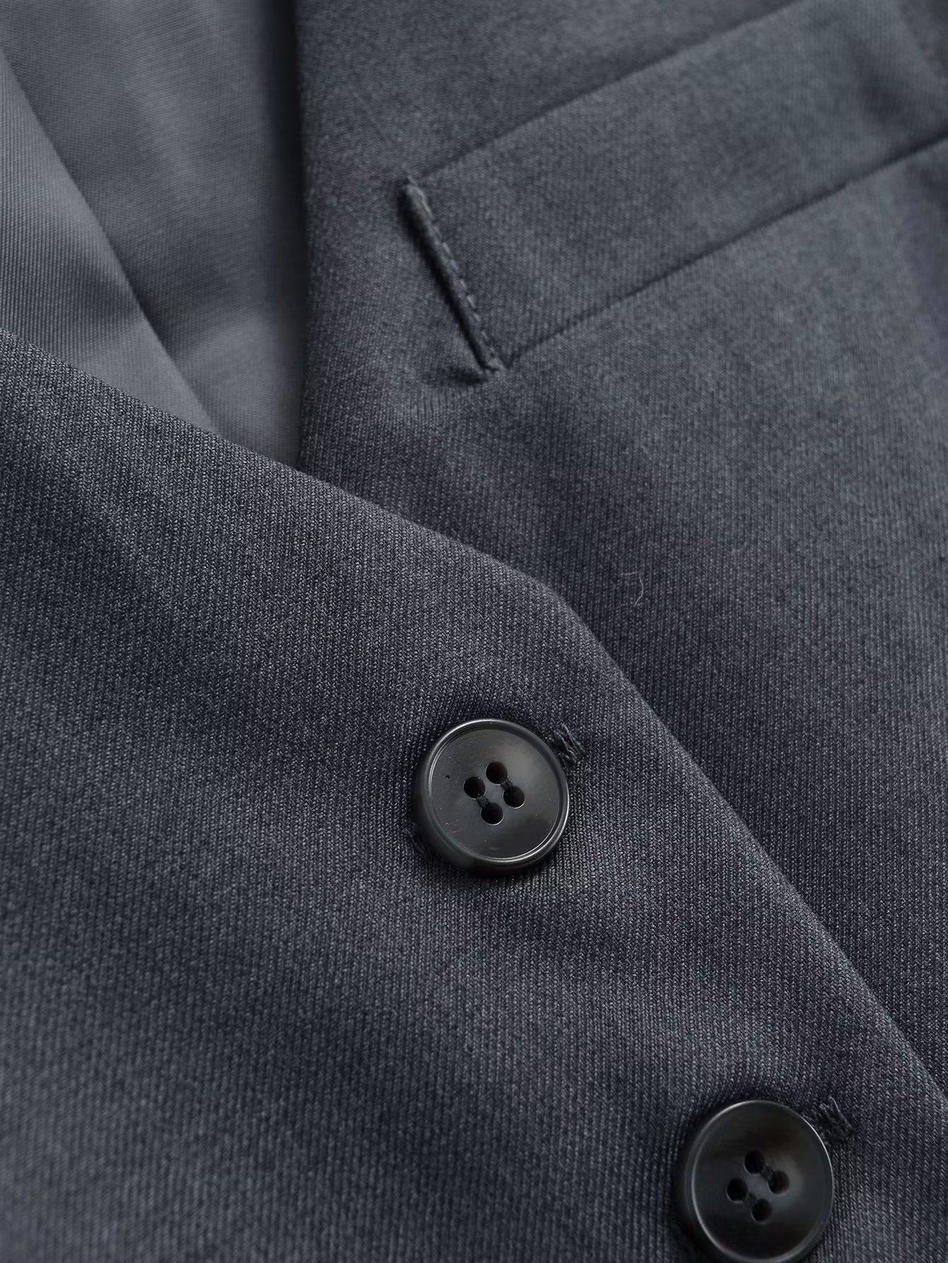 フロントの縦並びボタンと両サイドのポケットディテールが本格的な仕立ての良さを演出。