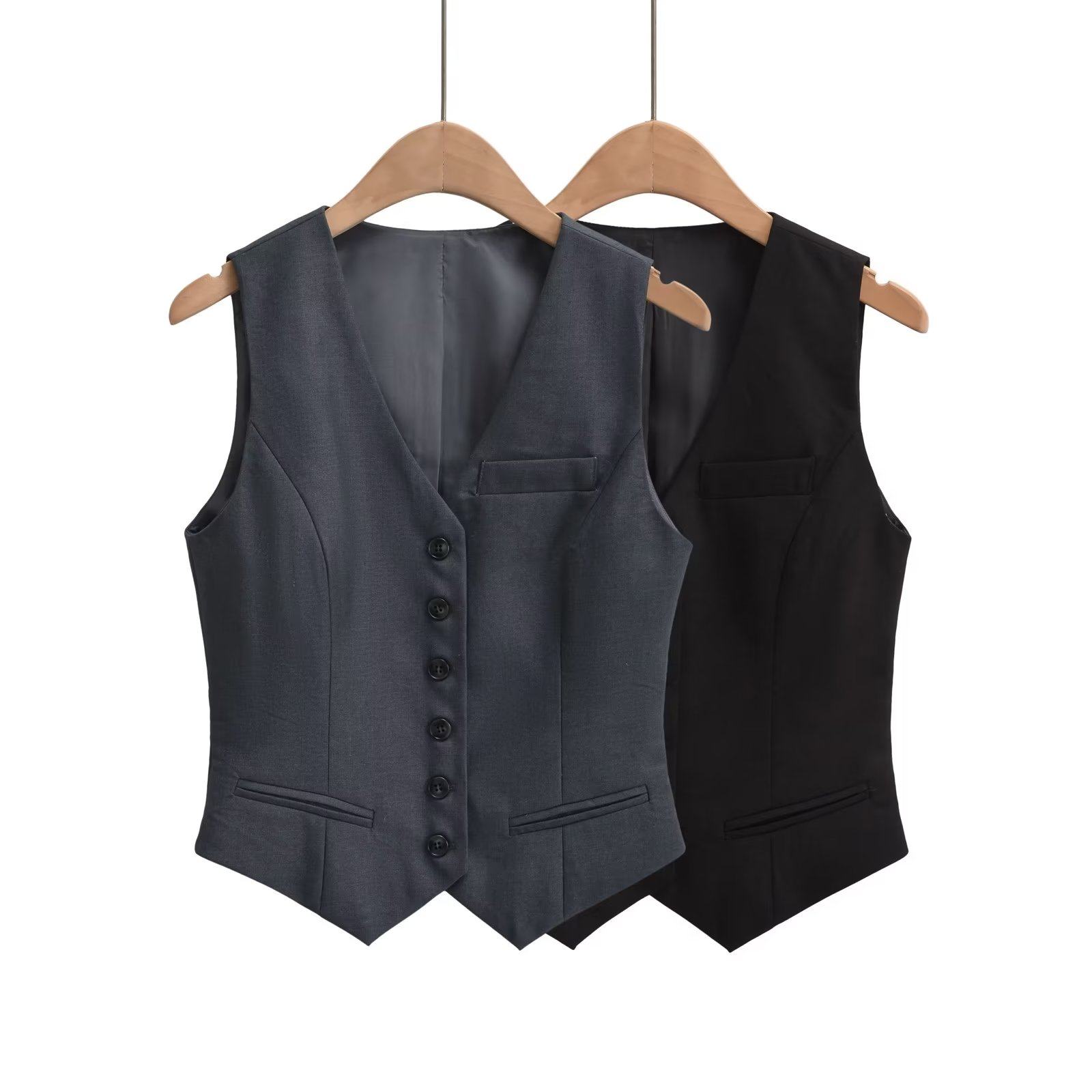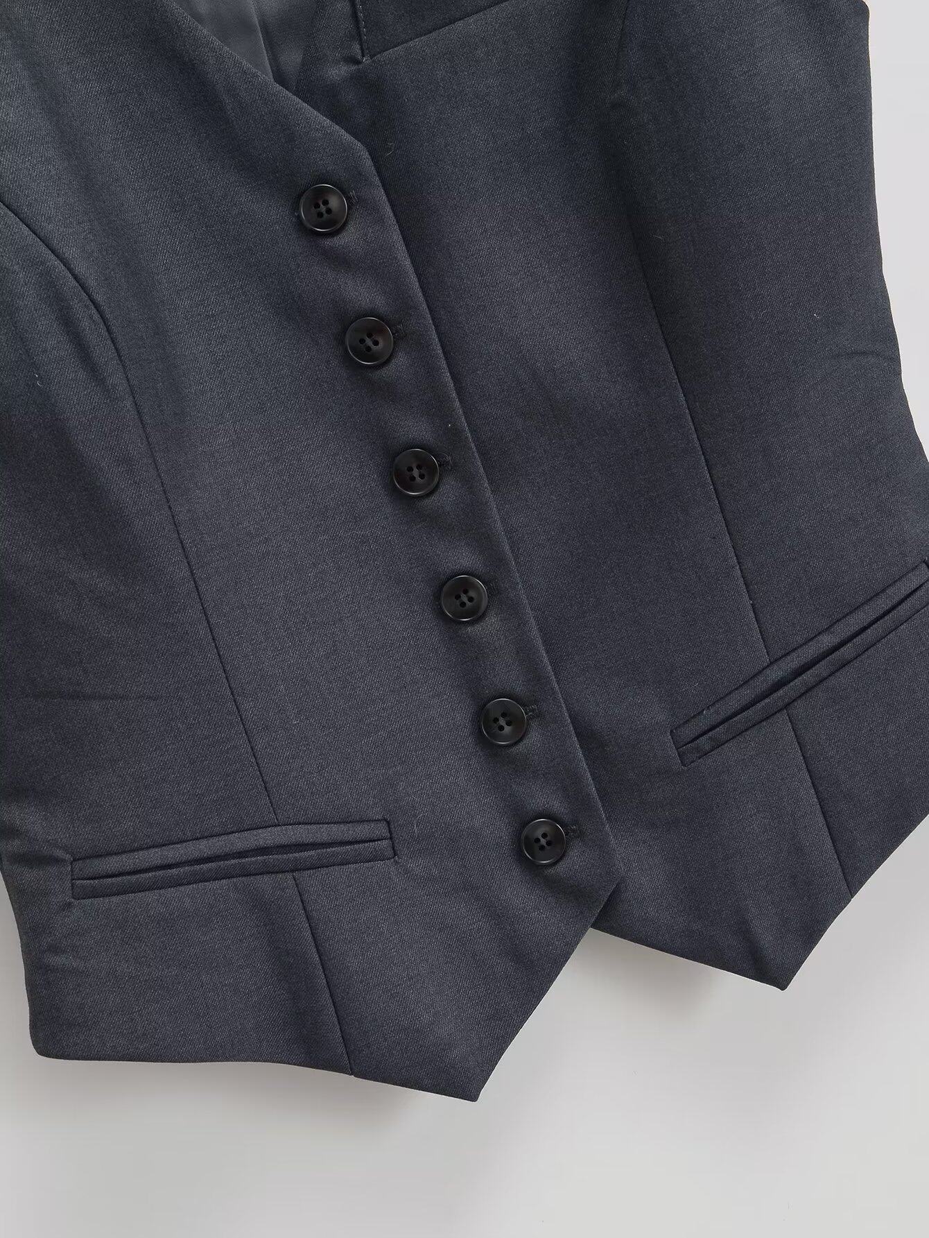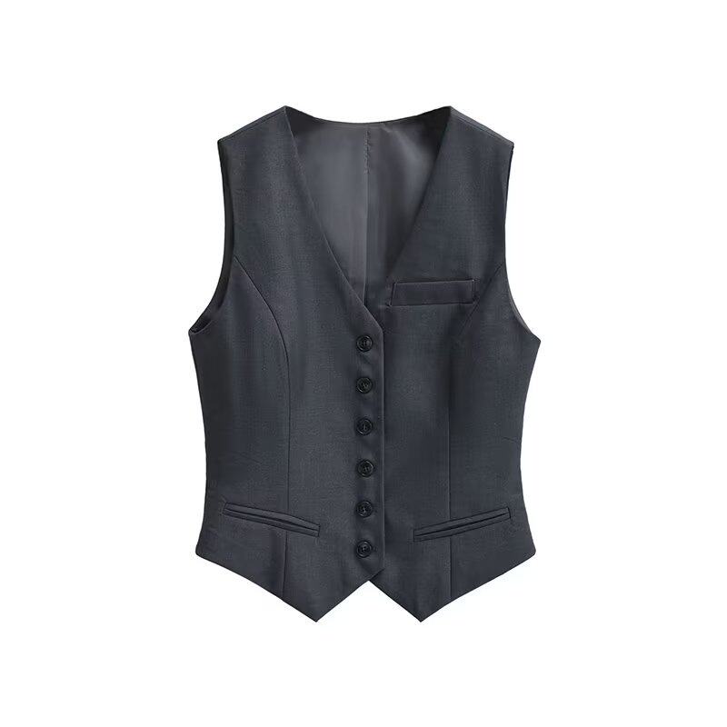 洗練されたテーラードデザインが魅力のビスチェは、シャツの上に重ねて着用することで格上げコーディネートが完成します。