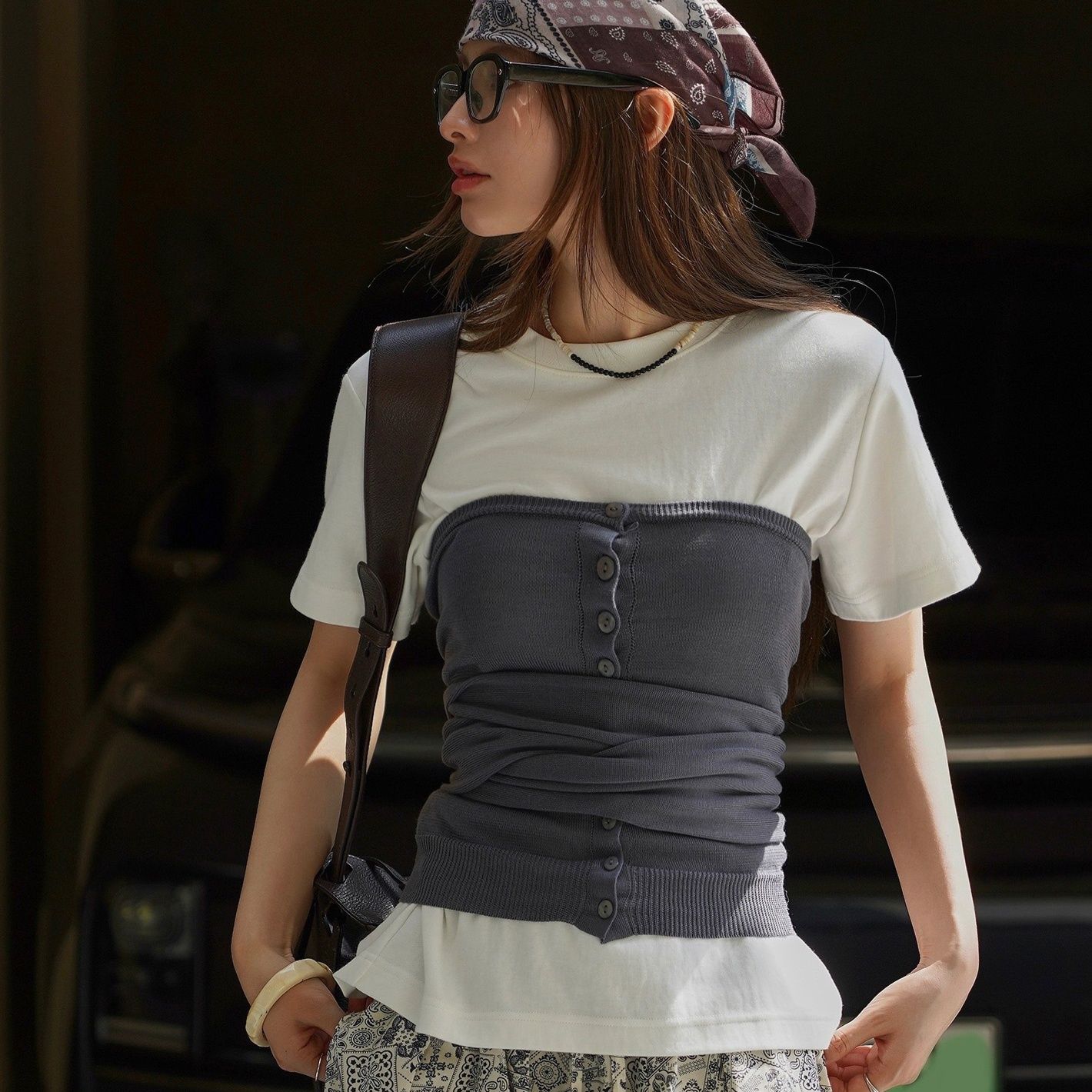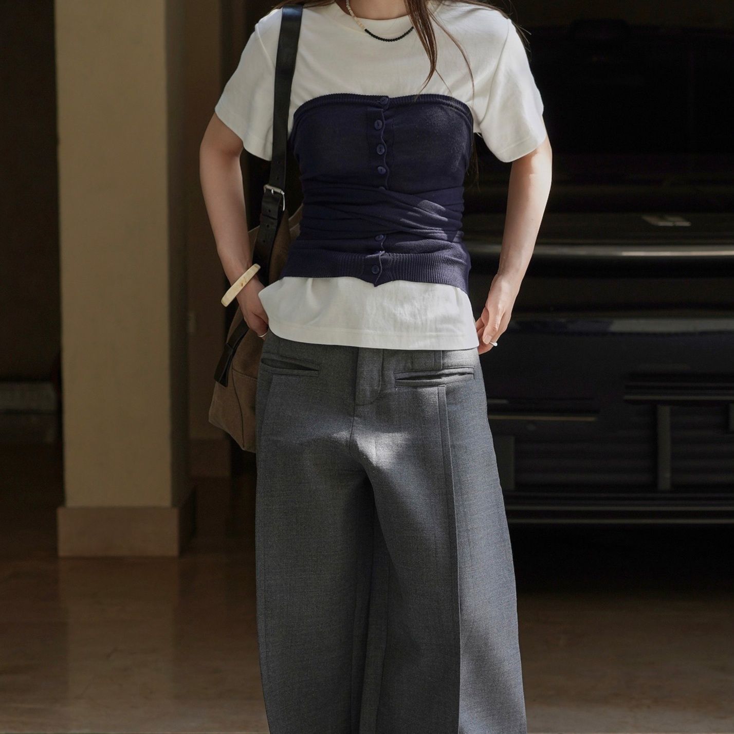 カジュアルからきれいめまで幅広いコーディネートに活躍するビスチェです。