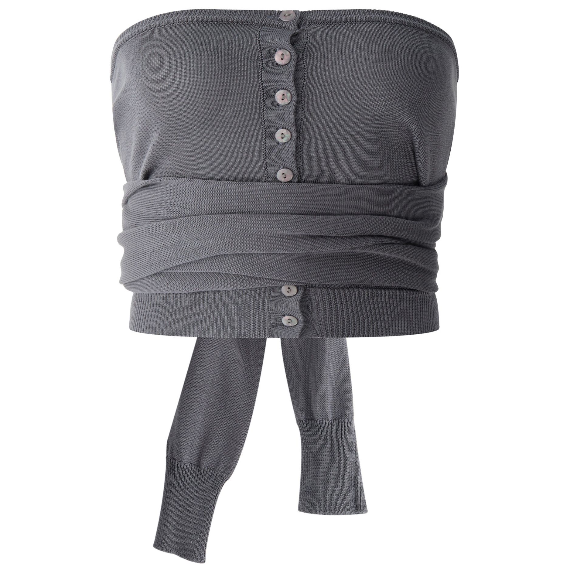 フロントのボタンデザインとバックのリボンディテールが大人可愛いアクセントになっています。
