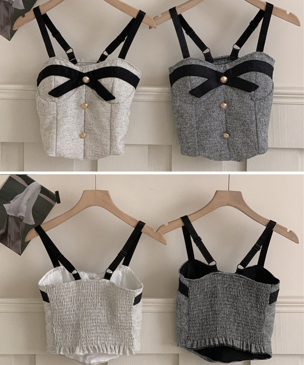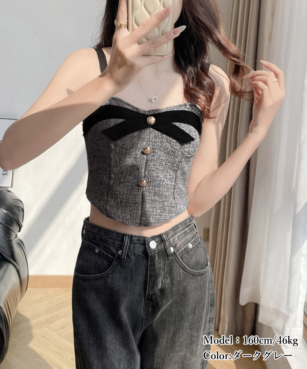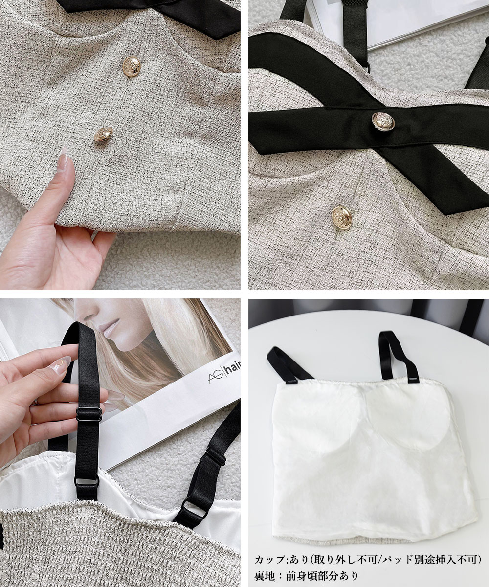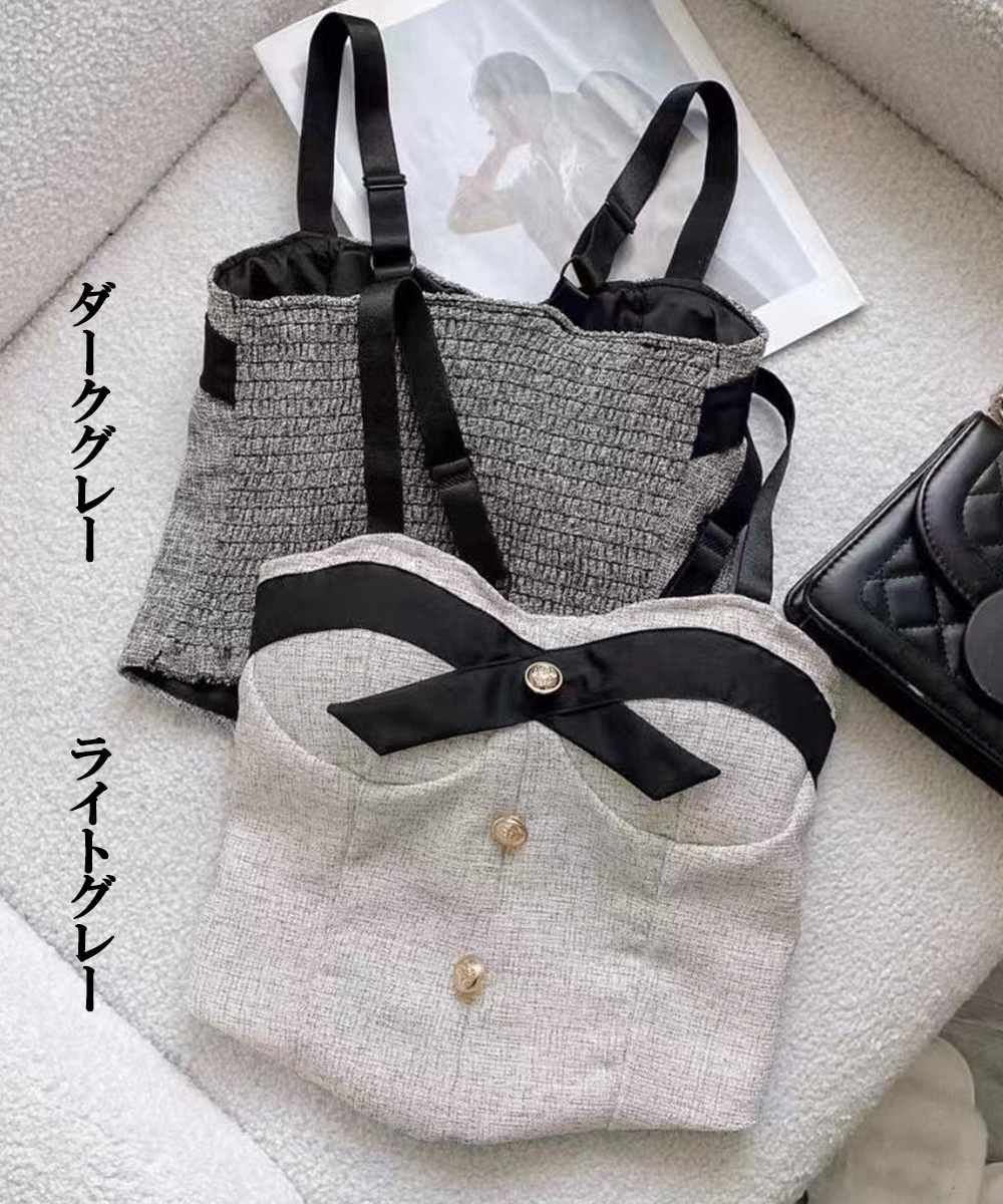 上品なツイード素材のリボン付きビスチェキャミソールです。