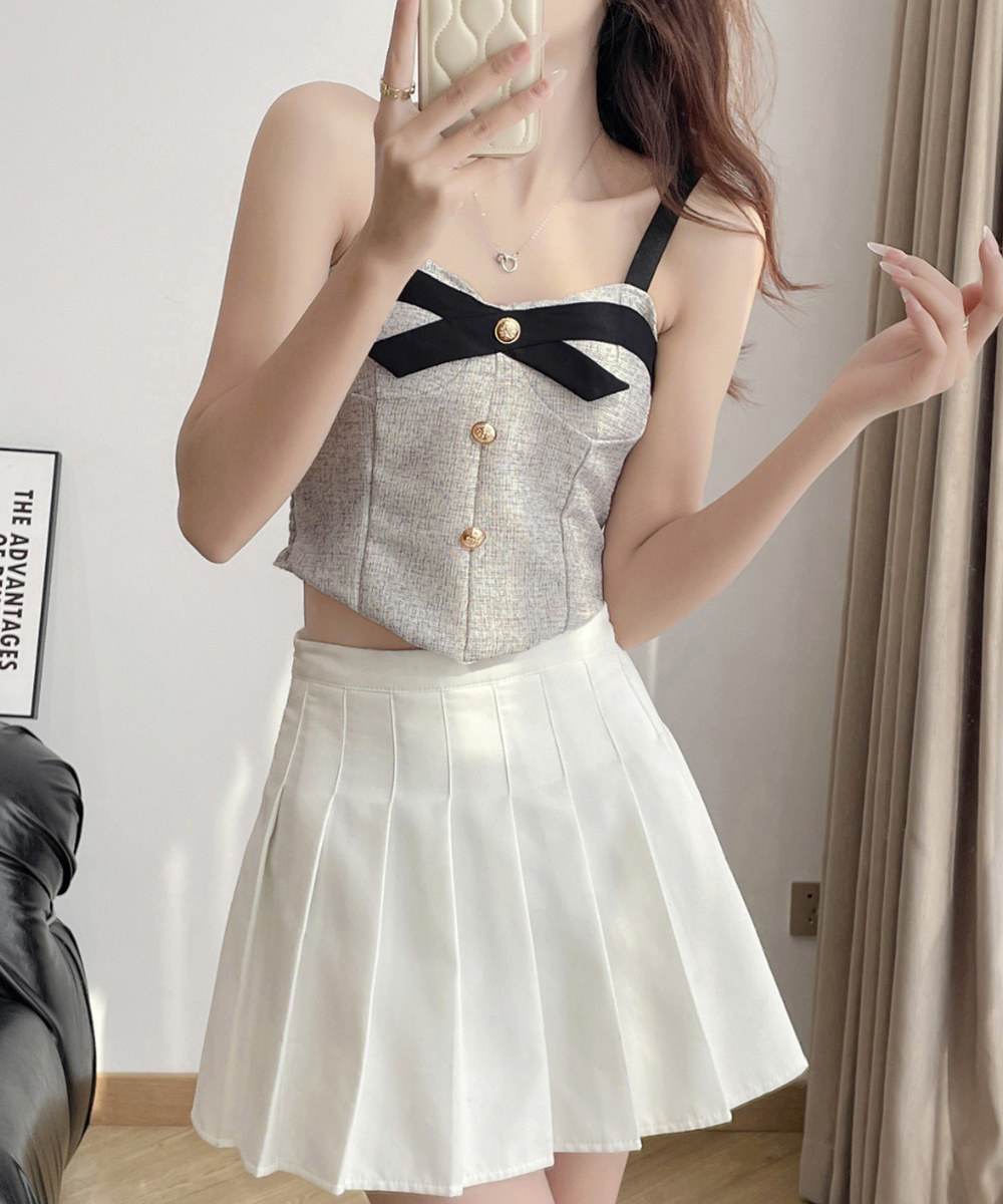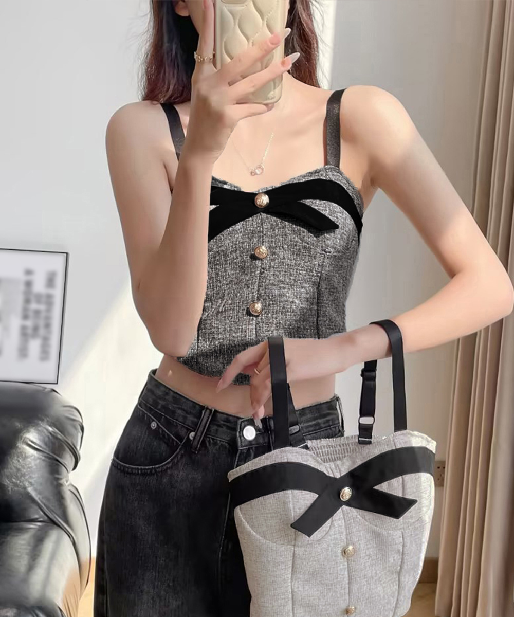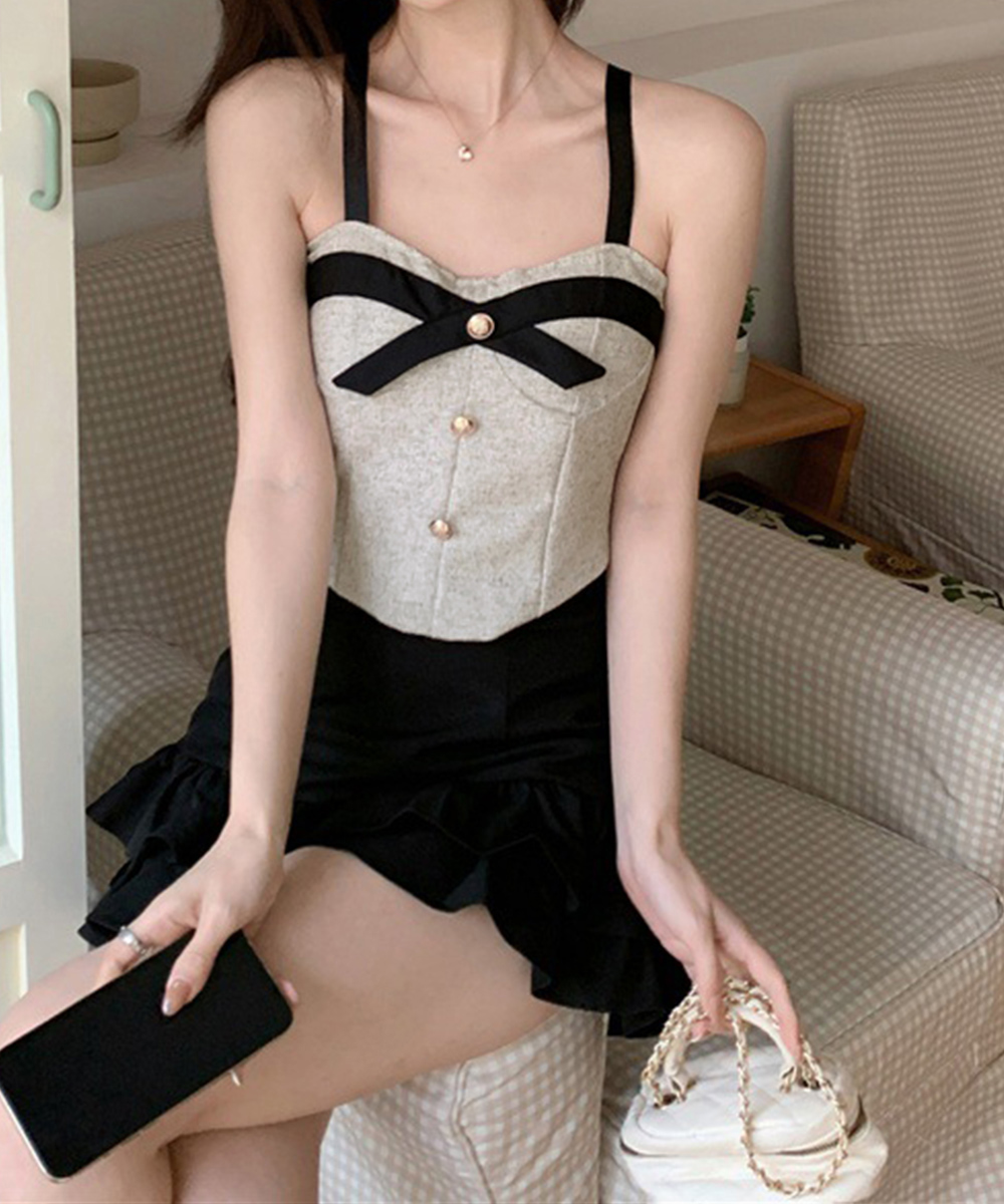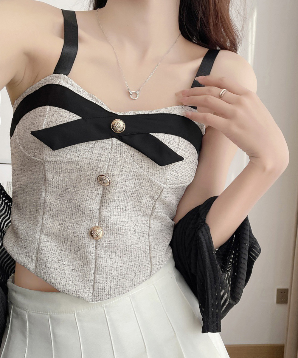 上品なツイード素材のリボン付きビスチェキャミソールです。