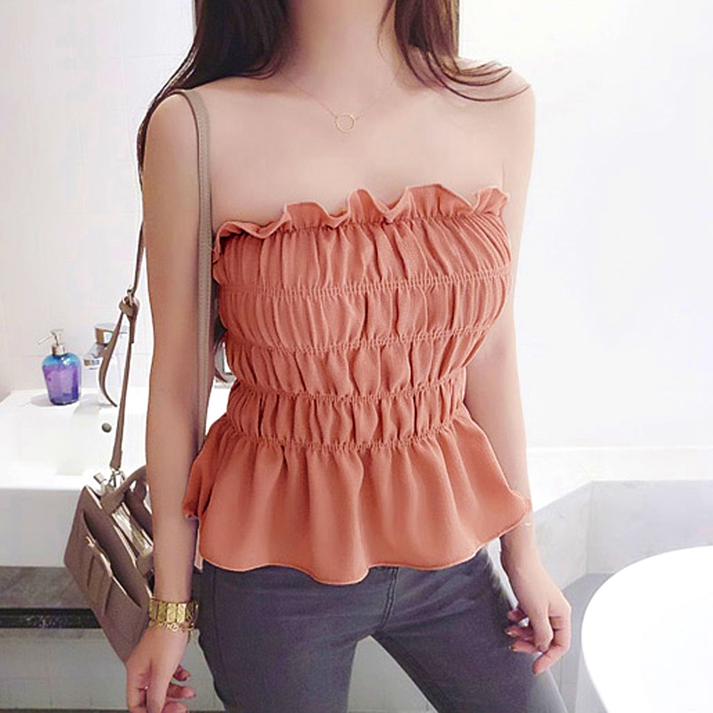 シャーリングデザインが美しいビスチェタイプのベアトップ。