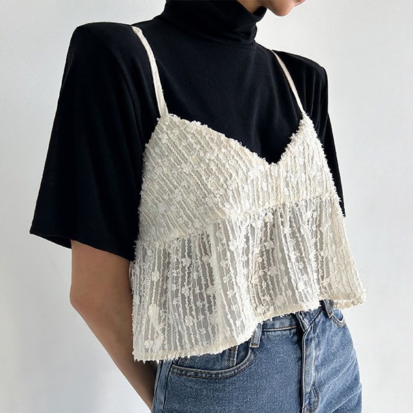 今季注目のフリンジデザインビスチェが登場。 繊細なフリンジが揺れるたびに上品な印象を演出します。 シンプルなトップスとのレイヤードスタイルや一枚着でも様になる万能アイテム。 大人の女性らしさを引き立てる洗練されたデザインです。