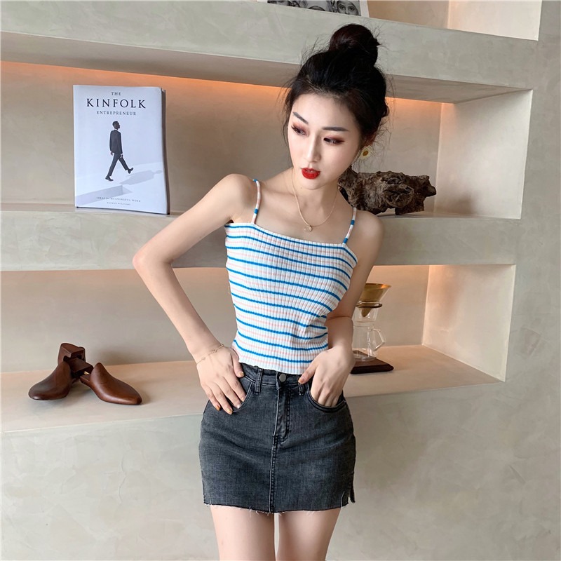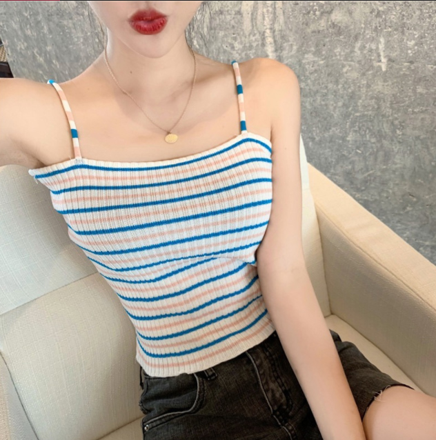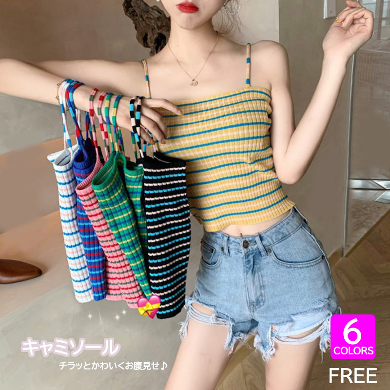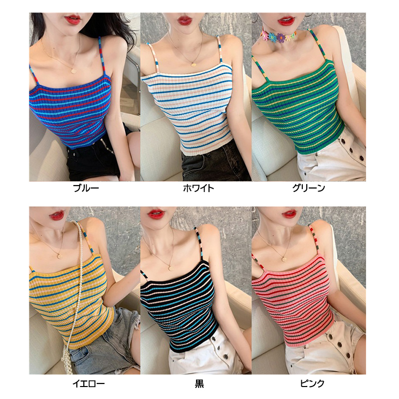 伸縮性抜群のニット素材を使用した縞模様のキャミソールです。