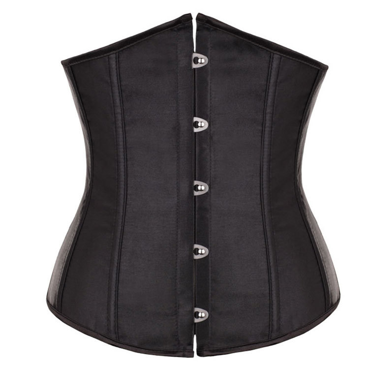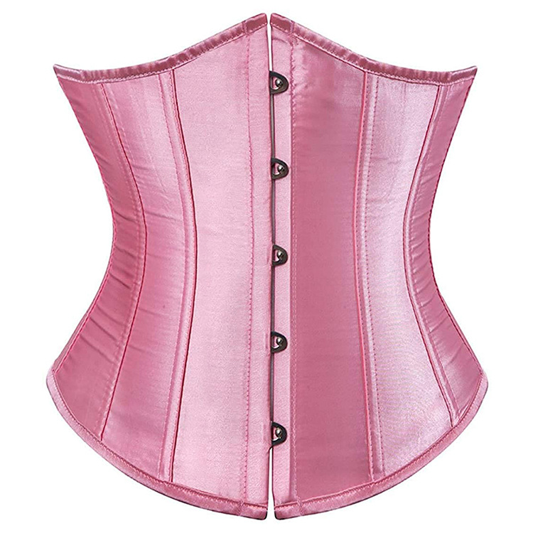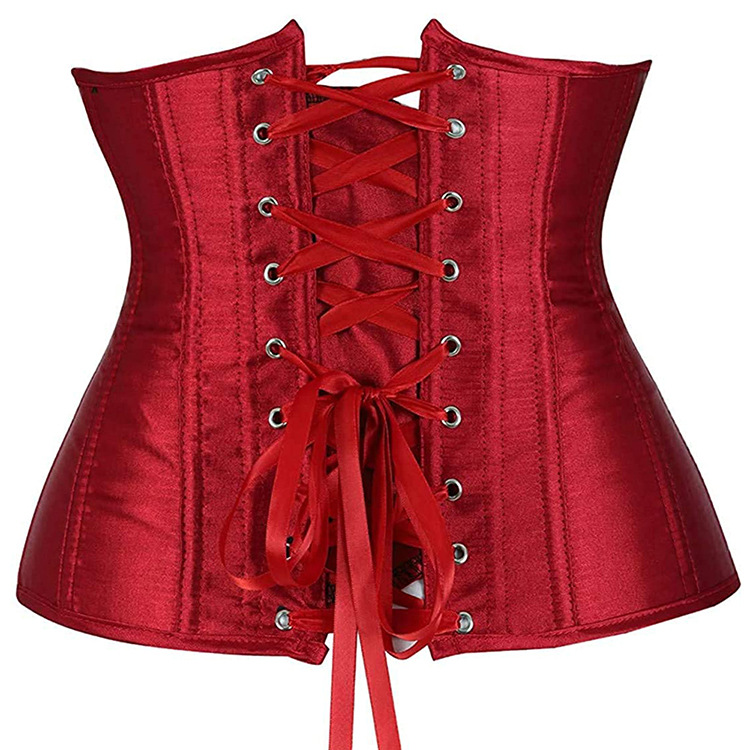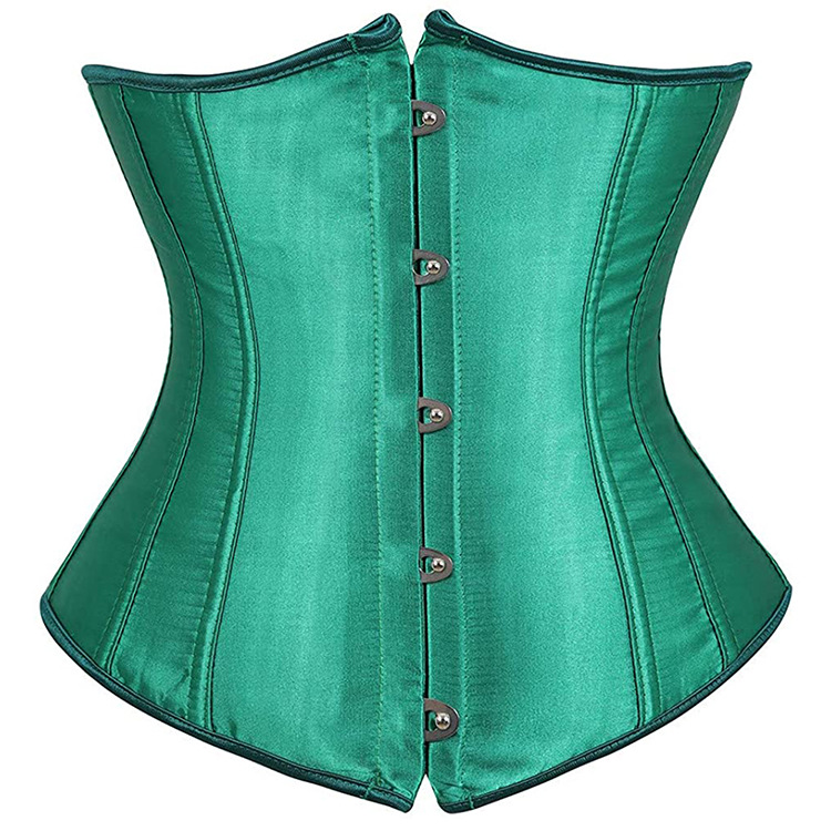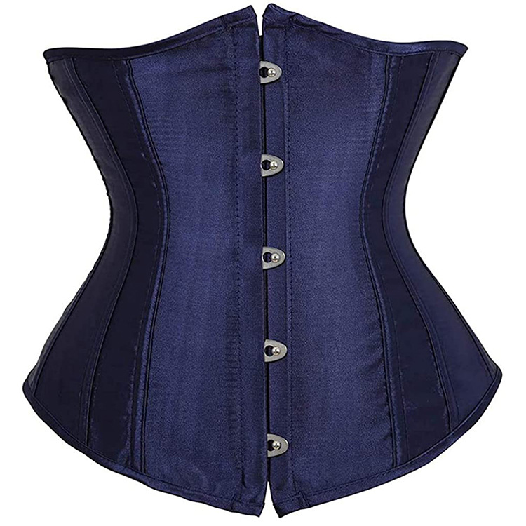 縦に入ったボーンがしっかりとウエストを引き締め、滑らかな光沢のある生地が高級感を演出します。