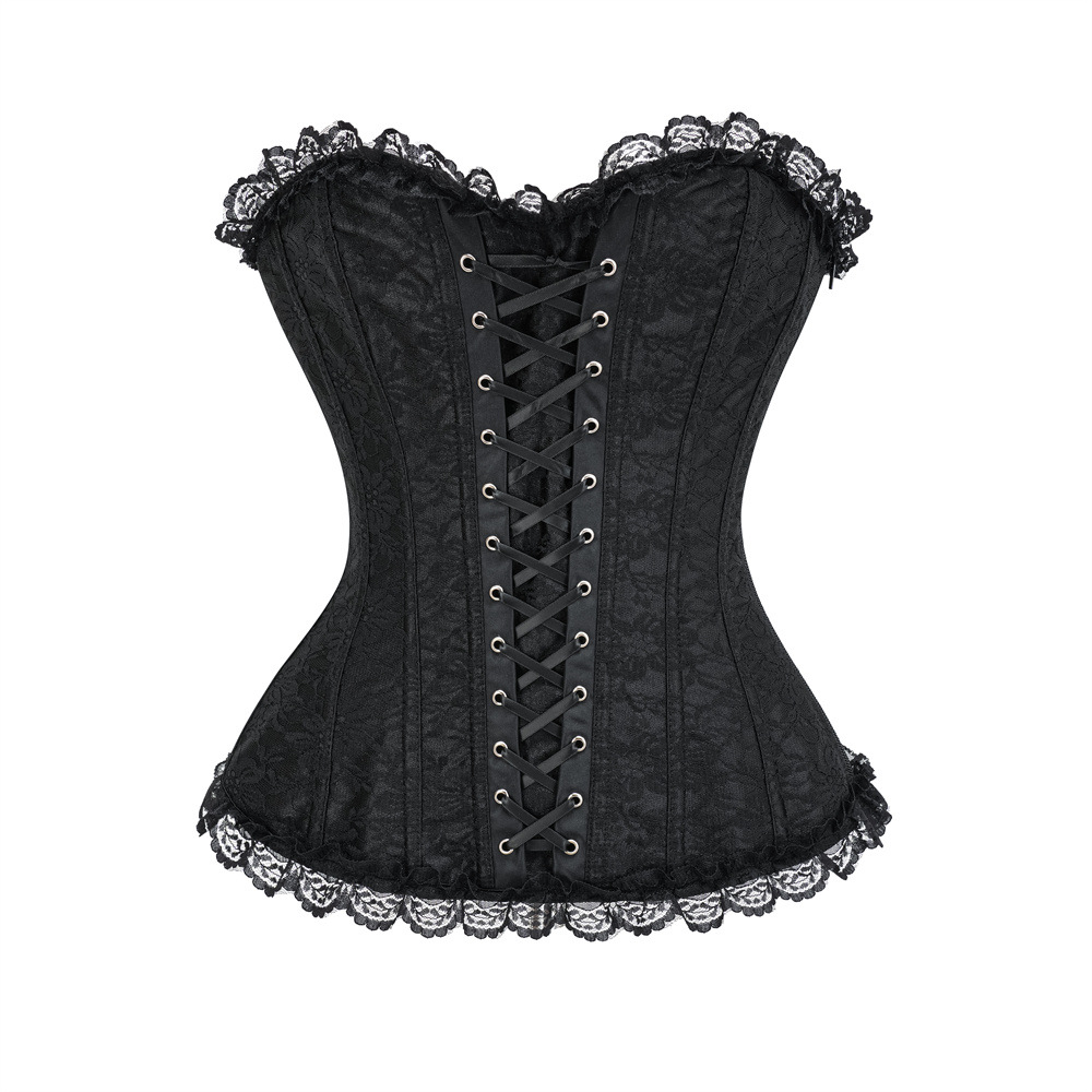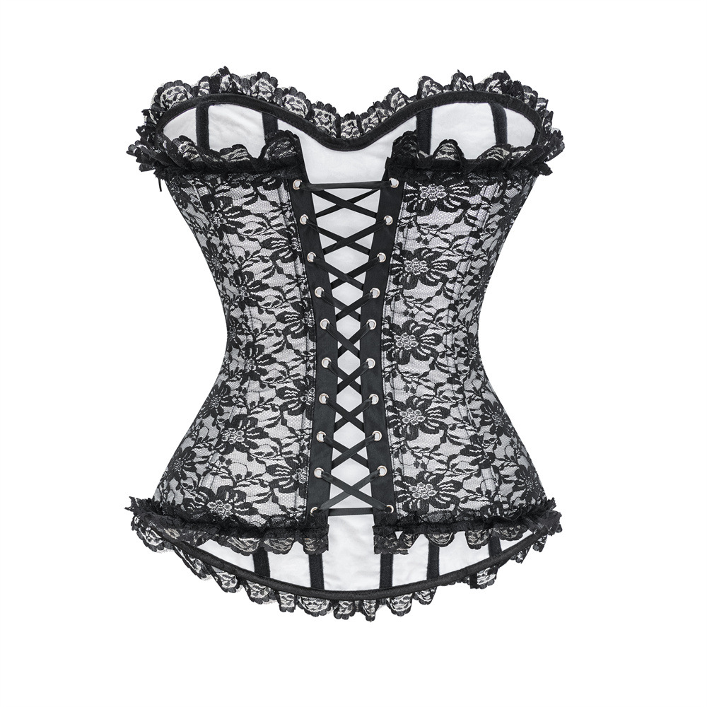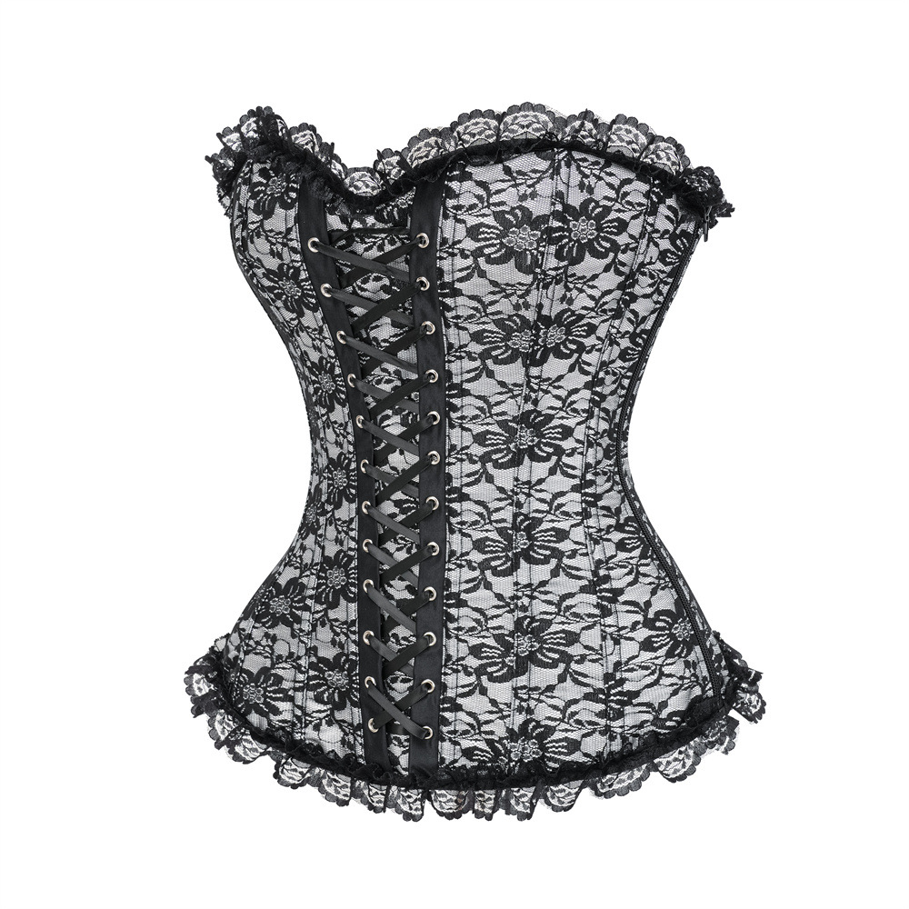 繊細な花柄レースをあしらった編み上げ式のビスチェです。