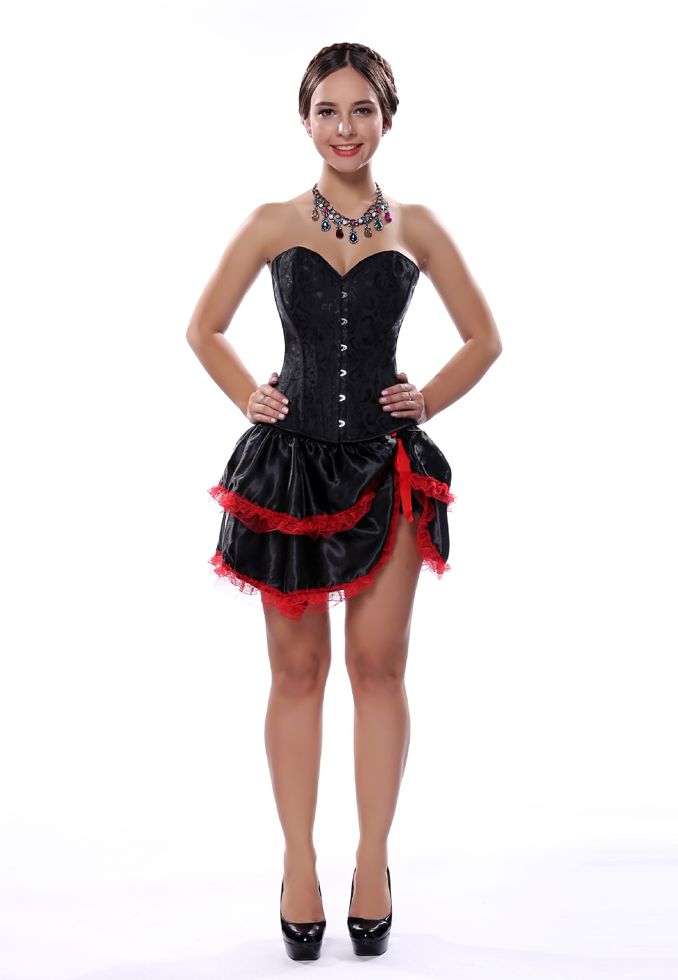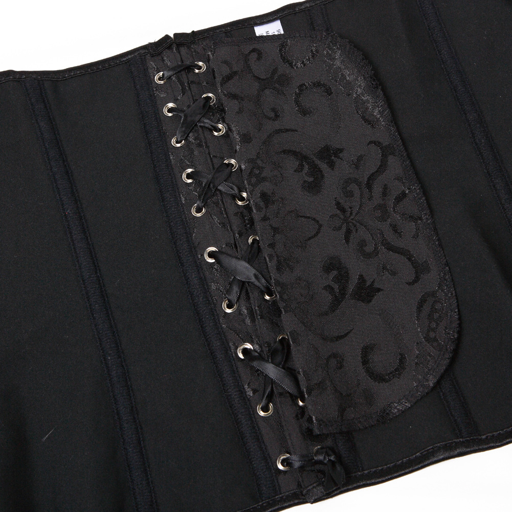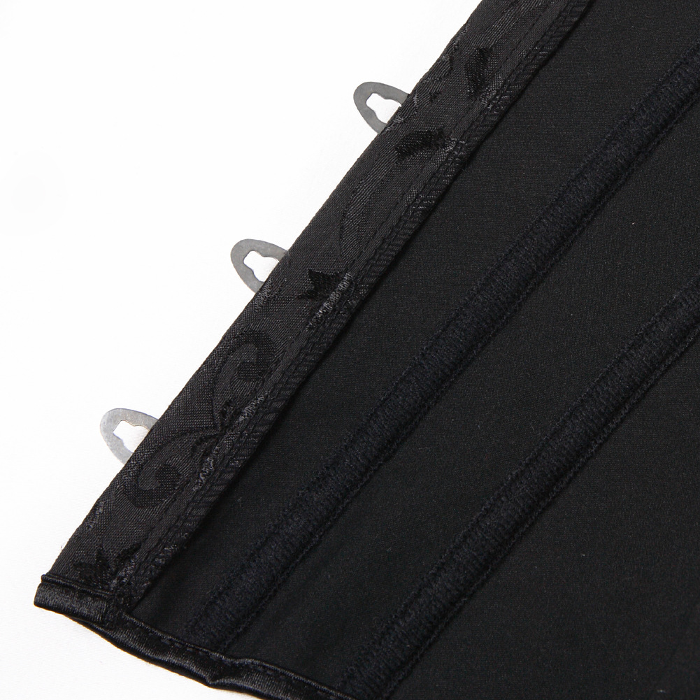 前面のホック式留め具と背面の編み上げ紐により、体型に合わせた細かな調整が可能なコルセットデザインとなっています。